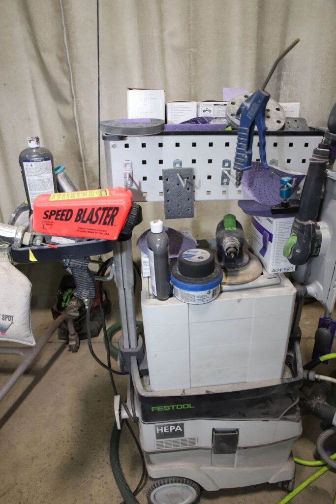 Not a lot of shops have these, but when you turn on these sanders, the air filtration units suck all the particles that are being sanded off and keep the air safe for workers and customers who come into our shop.