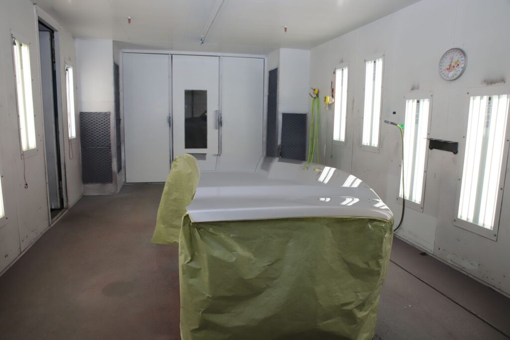 This booth is specifically built for the new industry standards for waterborne paints. It’s better for the environment, for the painter’s health, and gives more clarity to the color on the vehicle. This booth has more filtration so the exhaust is virtually cleaner air than the intake.
